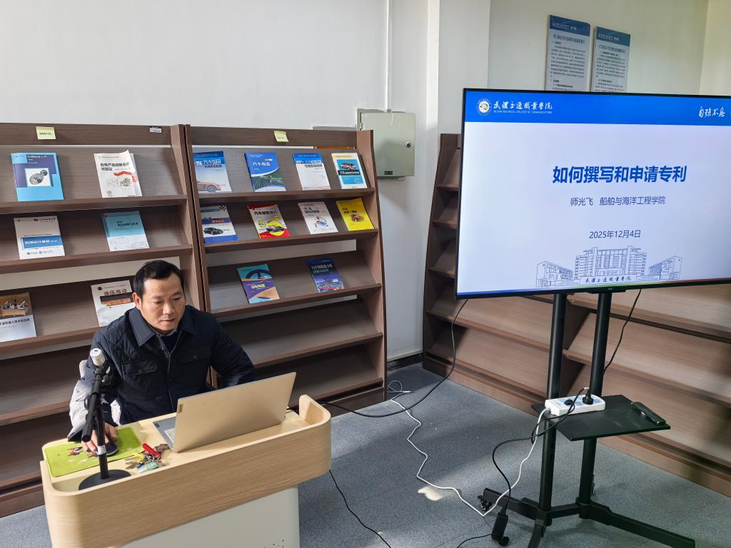 12月5日下午,学校职业教育与发展规划研究院在图书馆二楼长江航运文化自有学术资源库,成功举办2025年第二批“职教学术沙龙”项目第七期交流活动。本次活动以“如何撰写和申请专利”为主题,由2025年第二批“职教学术沙龙”项目负责人、船舶与海洋工程学院师光飞副教授担任报告人,活动由职业教育与发展规划研究院李卓君老师主持。